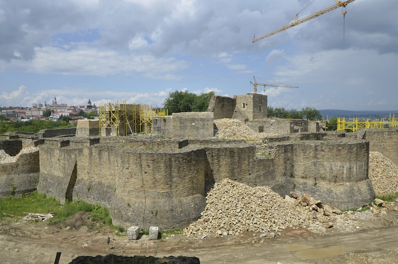 Dinspre Stupca (Ciprian Porumbescu) am pornit catre Suceava pentru ca vroiam neaparat sa ajungem la Cetatea de scaun a Sucevei si la Muzeul Satului Bucovinean. Stiam de acum cativa ani ca la cetate se efectuau lucrari de reconstructie si eram curios sa vad stadiul acestora, sa fac o comparatie cu ceea ce s-a facut la Cetatea Neamtului. Din pacate lucrarile merg lent si e un adevarat santier acolo. Insa tot merita admirata maretia cetatii de odinioara. Langa cetate se afla muzeul despre care va spuneam. Din pacate n-am intrat pentru ca era aglomeratie mare, avea loc si acolo un mic festival si de asemenea era plin de miri si mirese care se fotografiau iar noua ni se parea ca eram mereu in cadru. 🙂