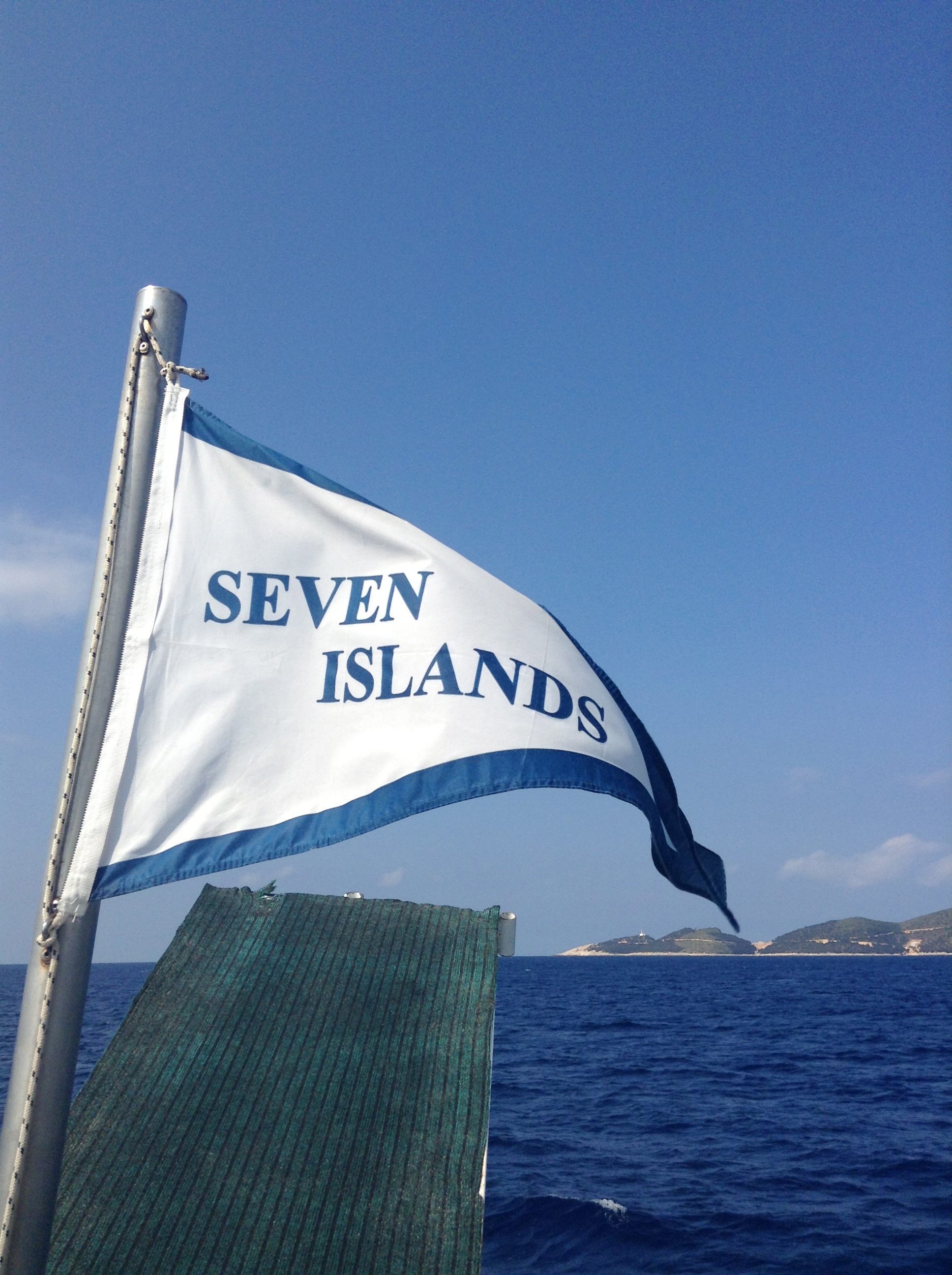 Programul e unul destul de bun. Nu e vorba de 7 insule asa cum ii spune numele, ci de 7 opriri dintre care doua sunt chiar pe Lefkada. Vasul pleaca din Nidri si ocoleste insula prin partea de sud unde puteti admira farul. Apropo, capitanul vorbeste in 3 limbi (greaca, engleza si italiana) dar cred ca de la anul se baga si pe romana. :)) Prima oprire e la Egremni, apoi la Porto Katsiki (dar numai in larg pentru ca nu are aprobare sa acosteze), apoi se pleaca spre Kefalonia unde se face o oprire in satul pescaresc Fiskardo. Urmeaza inca o oprire pe insula Ithaki (Itaca, insula lui Ulise) si de acolo se merge la Meganisi o insula relativ apropiata de Lefkada. Ultima oprire este undeva in partea sudica a insulei Scorpios (fosta in proprietatea familiei Onasis, actualmente a fiicei miliardarului rus care detine si clubul de fotbal AS Monaco). Apoi se ocoleste insula si se revine in Nidri cam pe la 19.30. Normal ca fiind rupti de foame am aterizat fix la El Greco!!! 🙂