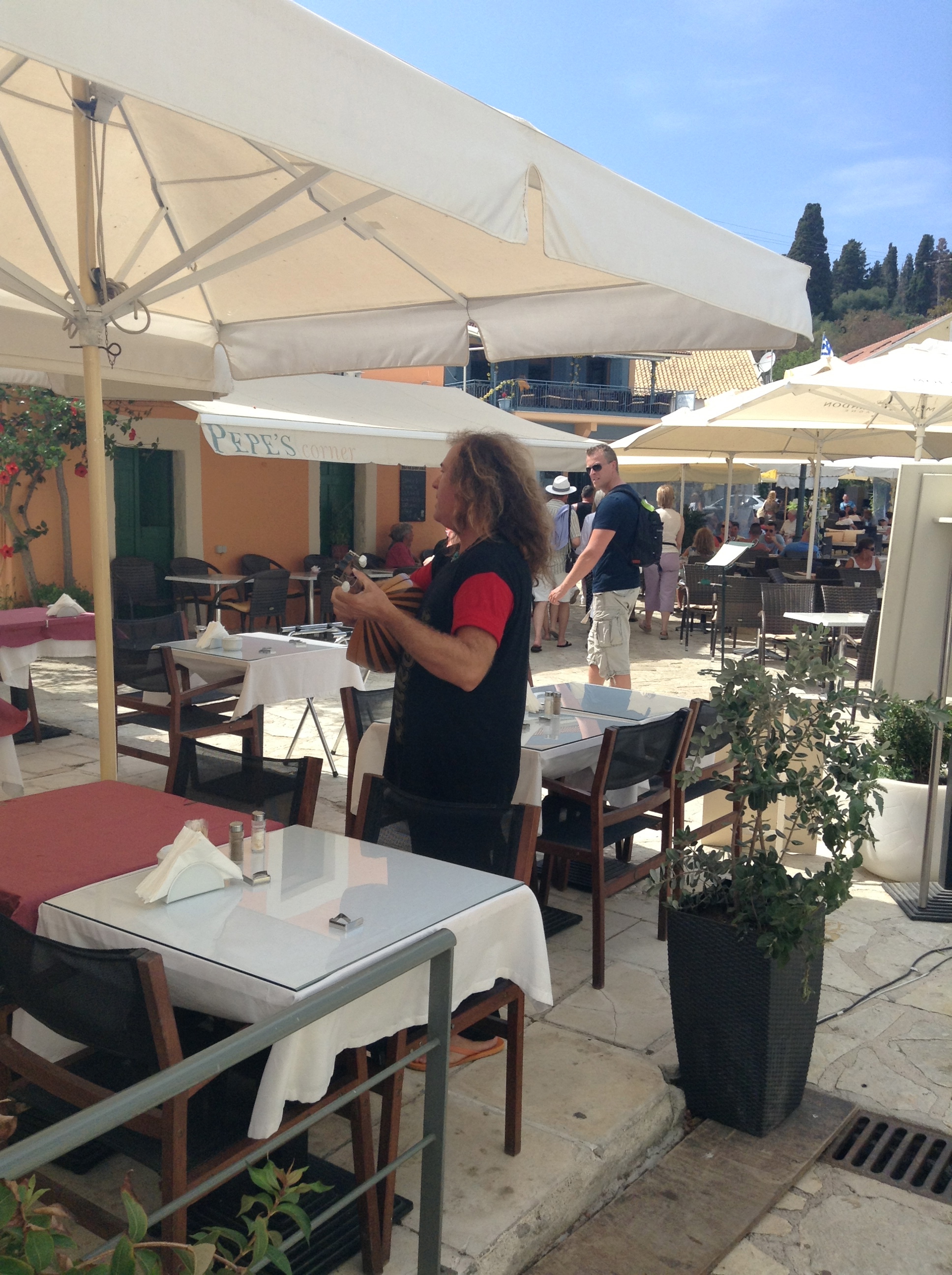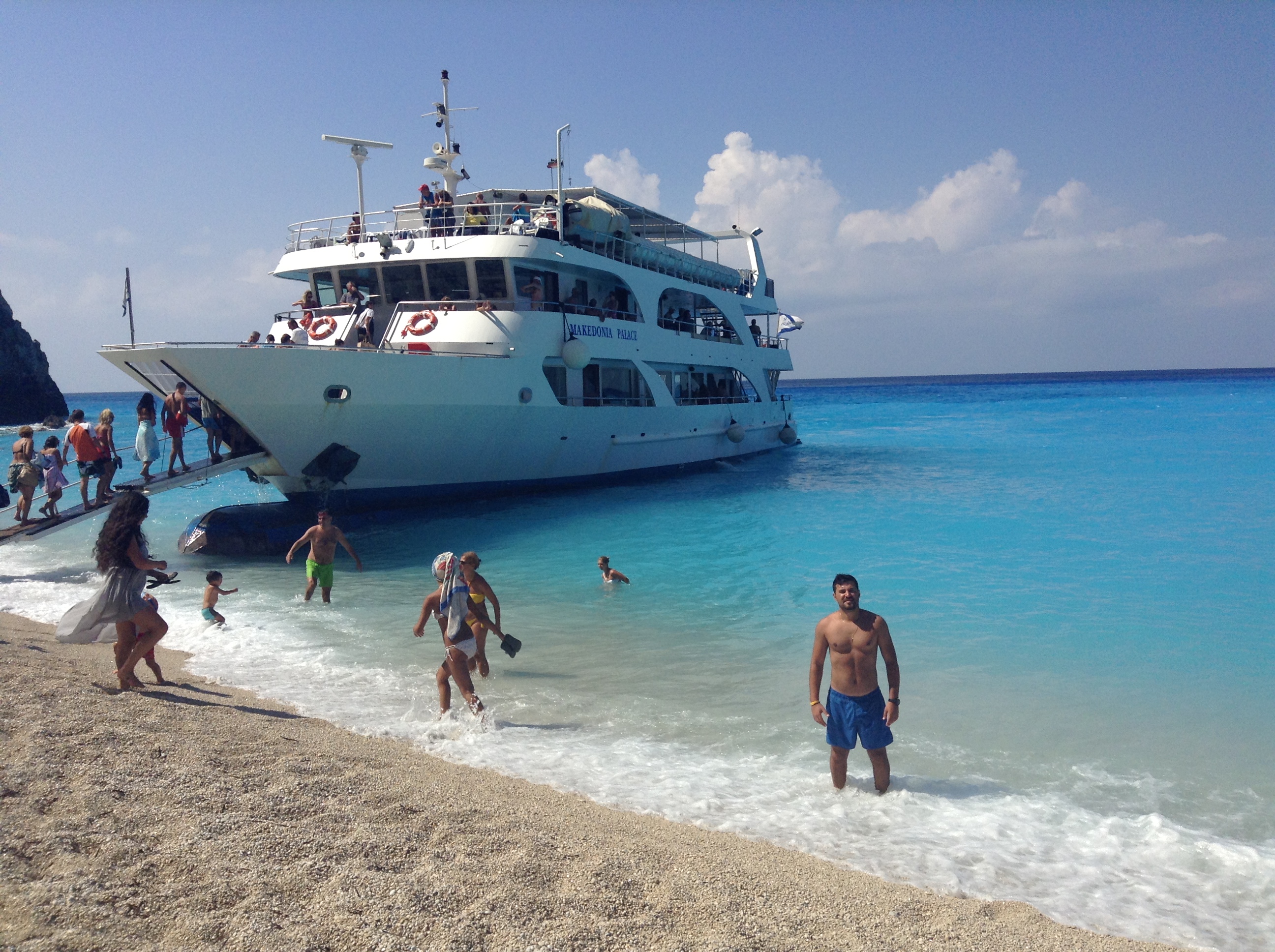 In a treia zi de cand am ajuns in Lefkada l-am cunoscut pe Mihail din Iasi. Lucreaza in Grecia de peste zece ani si cand l-am cunoscut noi vindea bilete pentru croaziera Seven Islands Day Cruise cu vasul Makedonia Palace. Eram pe plaja Kathisma si pentru ca e concurenta mare intre vasele de croaziera (cred ca sunt vreo 4-5) tipul care ne-a contactat initial a remarcat ca suntem romani si si-a trimis colegul roman sa ne vanda mai bine. Uite asa am rezervat biletele cu 15 euro de persoana si promisiunea ca vom primi un discount de 15% daca luam masa la restaurantul El Greco unde Mihail lucreaza seara (ulterior am aflat de la capitanul vasului ca restaurantul este tot o afacere in familie).